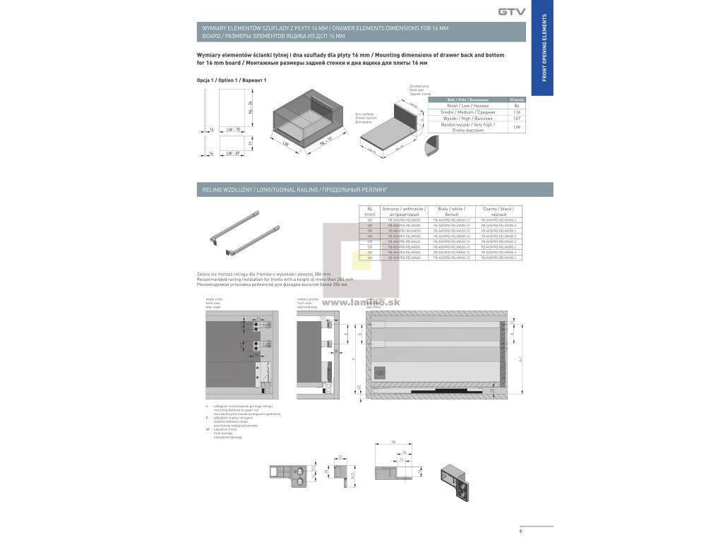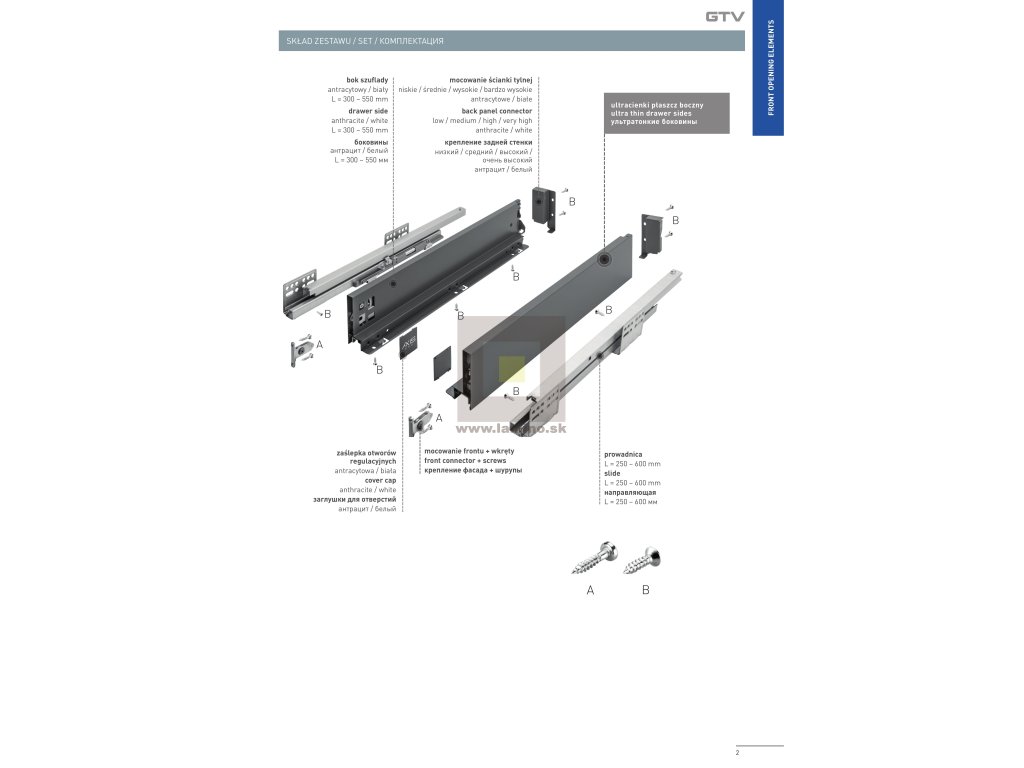 - plnovýsuv v dĺžkach od 250-600 mm umožní úplné vysunutie zásuvky na dĺžku celého vedenia, to je mimoriadne užitočné pri plytkých zásuvkách, kde je sťažený prístup k zadnej časti