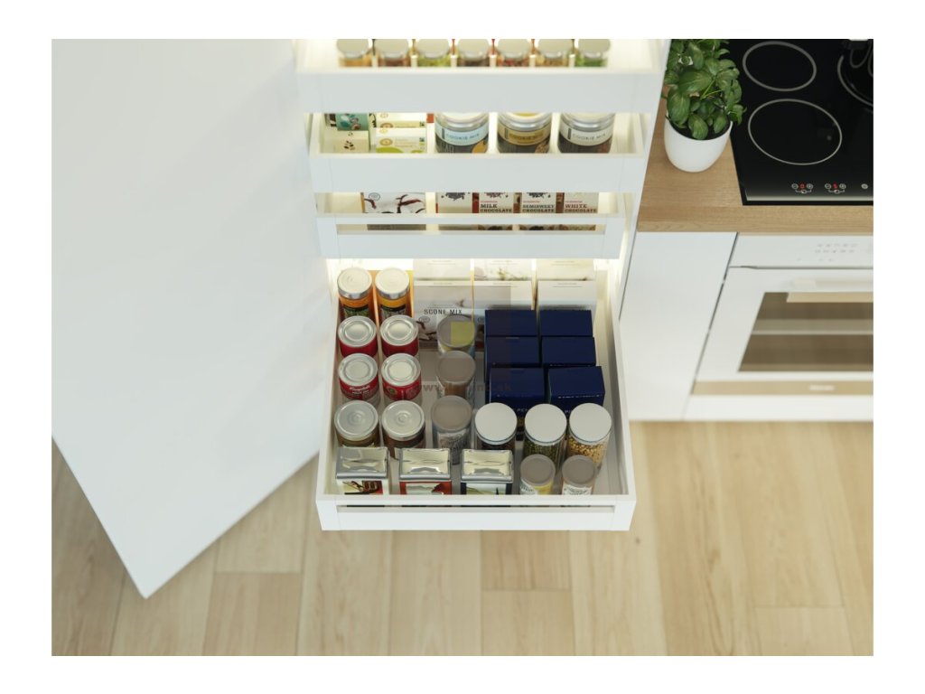 - plnovýsuv v dĺžkach od 250-600 mm umožní úplné vysunutie zásuvky na dĺžku celého vedenia, to je mimoriadne užitočné pri plytkých zásuvkách, kde je sťažený prístup k zadnej časti
