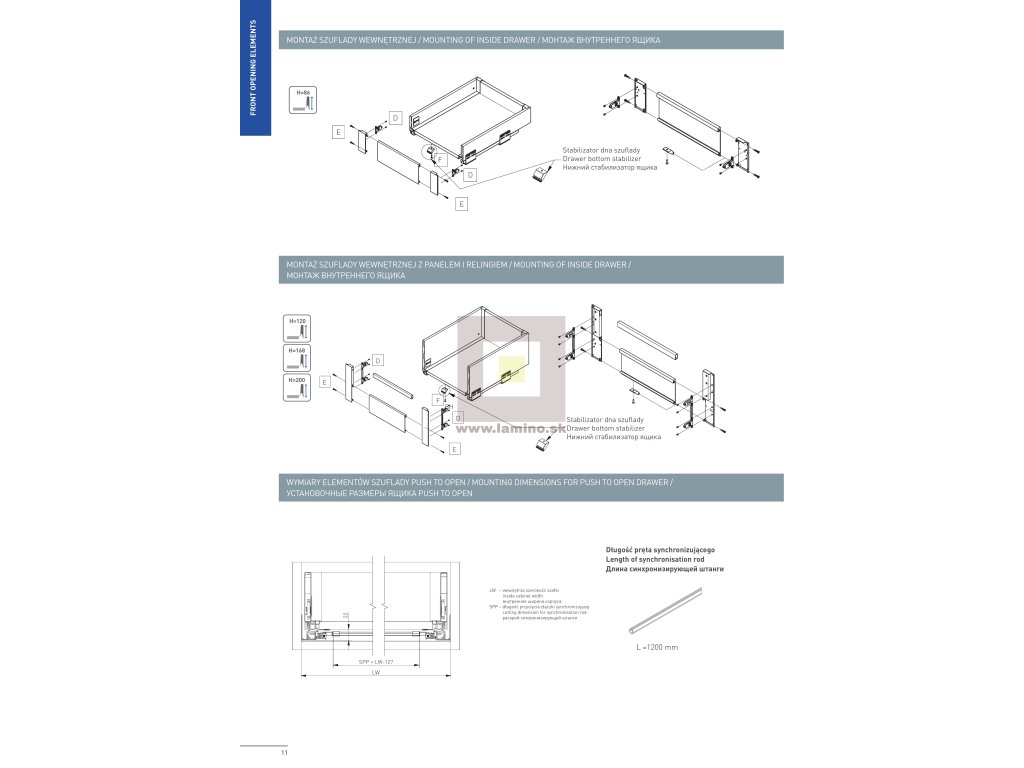 - plnovýsuv v dĺžkach od 250-600 mm umožní úplné vysunutie zásuvky na dĺžku celého vedenia, to je mimoriadne užitočné pri plytkých zásuvkách, kde je sťažený prístup k zadnej časti