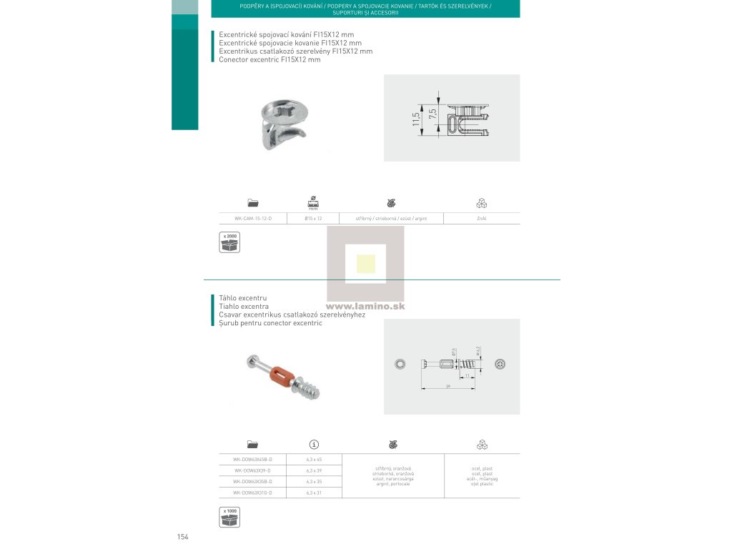Excenter S-15 - upevňovací prvok používaný pri montáži nábytku, na spájanie drevených dosiek. WK-CAM-15-2-DDodatočné parametre