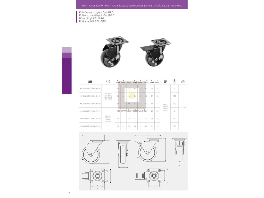 Koliesko CALIBRO H=50,5mm fi35mm s brzdou čierna