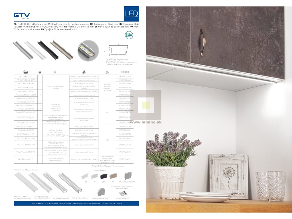 LED lišta je súčasným trendom lineárneho osvetlenia. Počas svietenia LED pás vytvára teplo, ktoré sa z neho musí odvádzať. V opačnom prípade sa môže páska opotrebovať. Na odvod tepla z lišty sa používajú hliníkové profily GLAX. Aby sa teplo účinne odvádzalo z pásky do hliníkového profilu musí sa páska prilepiť celou svojou plochou. Preto pred nalepením LED pásika do profilu GLAX je potrebné odmastiť jeho stred. Aplikované profily si zákazníci veľmi často vyberajú z dôvodu veľmi jednoduchej montáže. V prípade mini profilu sa používajú špeciálne montážne konzoly s malými zakrivením hrán, ktoré držia profil na mieste. Odporúča sa, aby vzdialenosť medzi úchytmi nebola väčšia ako 1 meter. Montážne konzoly sa priskrutkujú k zvolenému povrchu skrutkou Ø 3 s kužeľovou hlavou. Je veľmi dôležité, aby priemer hlavy skrutky nepresiahol 6 mm.