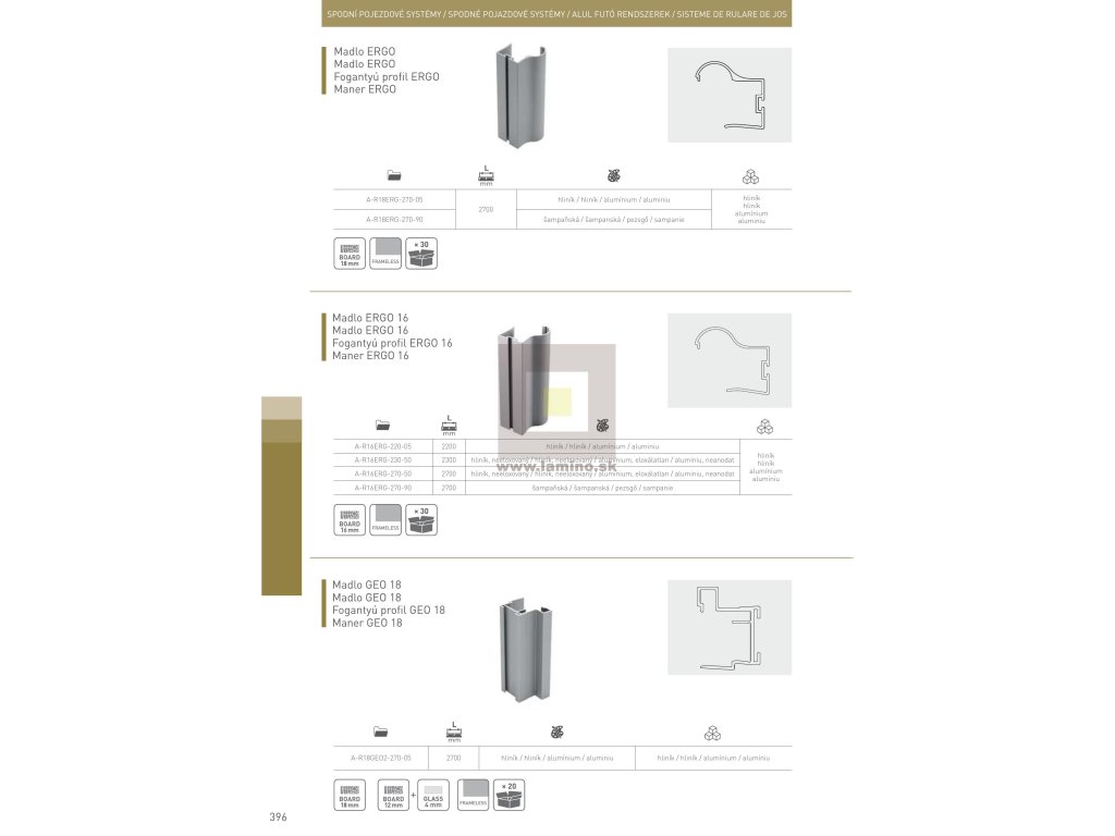 Madlo ERGO je bezrámový systém používaný na konštrukciu posuvných dverí v šatni a vo vstavaných skriniach. Základom takýchto dverí sú tiché a bezproblémové komponenty, preto tento systém funguje spoľahlivo. Madlo ERGO je určené nielen na jeden vzor nábytkových dosiek. Systém je prispôsobený maximálnemu zaťaženiu krídla 50 kg.