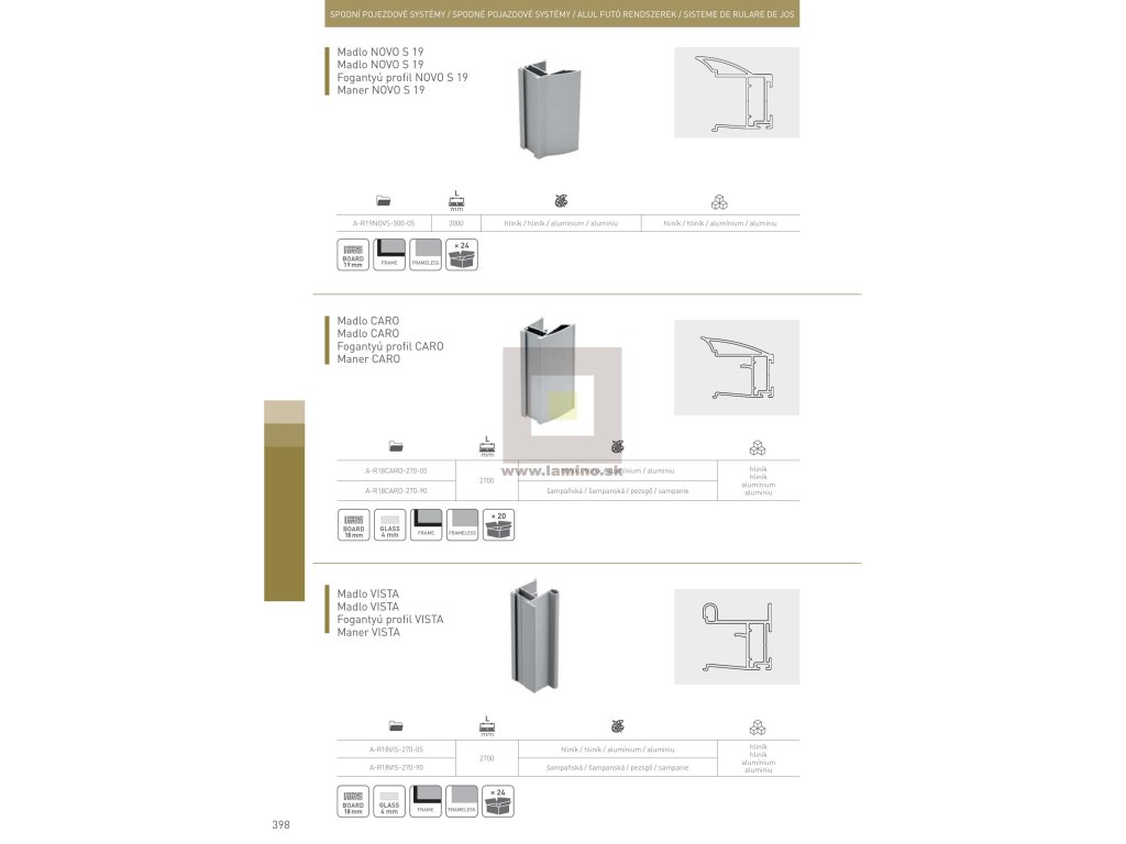 Madlo VISTA je používané pri výrobe posuvných dverí, vstavaných skríň a šatníkov. Profil VISTA (madlo) je možné použiť na viacero hrúbok materiálov 4 mm ale aj 18 mm vďaka čomu je možné použiť ako výplň sklo, drevotriesku alebo kombináciu skla nalepeného na drevotrieske. Moderné a štýlové madlo VISTA poskytuje pohodlné uchopenie.