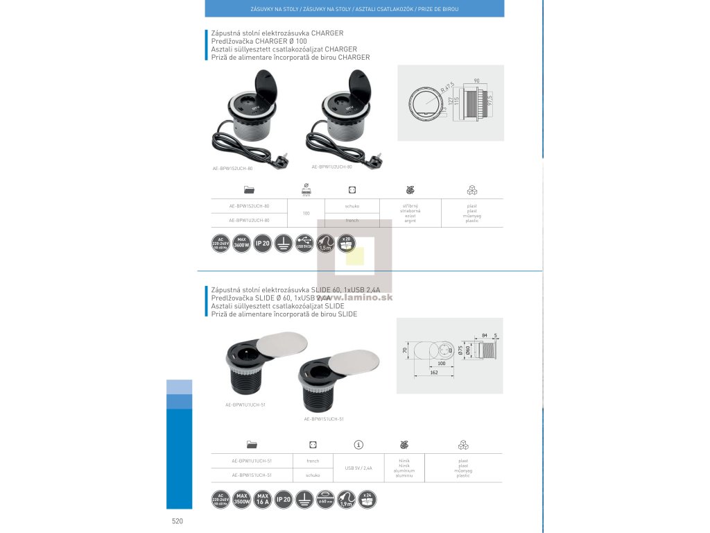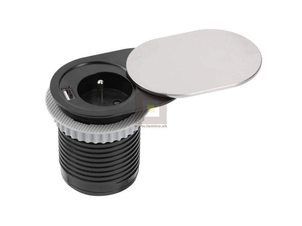 Zásuvka SLIDE 1x230V 1xUBS 60mm inox