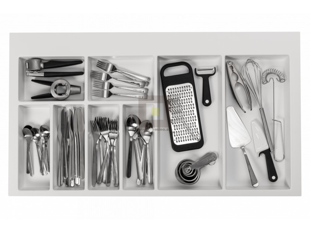 Príborník do zásuvky Axispace je vyrobený s kvalitného plastu, umožňuje spracovať interiéry kuchynských zásuviek. Príborník je veľmi priestranný a praktický, umožňuje vám mať všetko na dosah ruky, čo je mimoriadne dôležité pre každého človeka, ktorý sa venuje vareniu. V ponuke máme príborníky v rôznych veľkostiach (340-840 mm).
