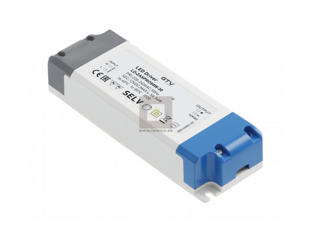 LED trafo 54 W, vhodné pre zapojenie k LED pásikom. Vstup 220-240V AC, Výstup 12V DC IP20 max. + 45 ° C Farba biela. V ponuke tiež ďalšie LED trafa. Rozmer: d:155 mm š: 53 mm v: 30 mm Kód: LD-ZASPRO54W-30Dodatočné parametre