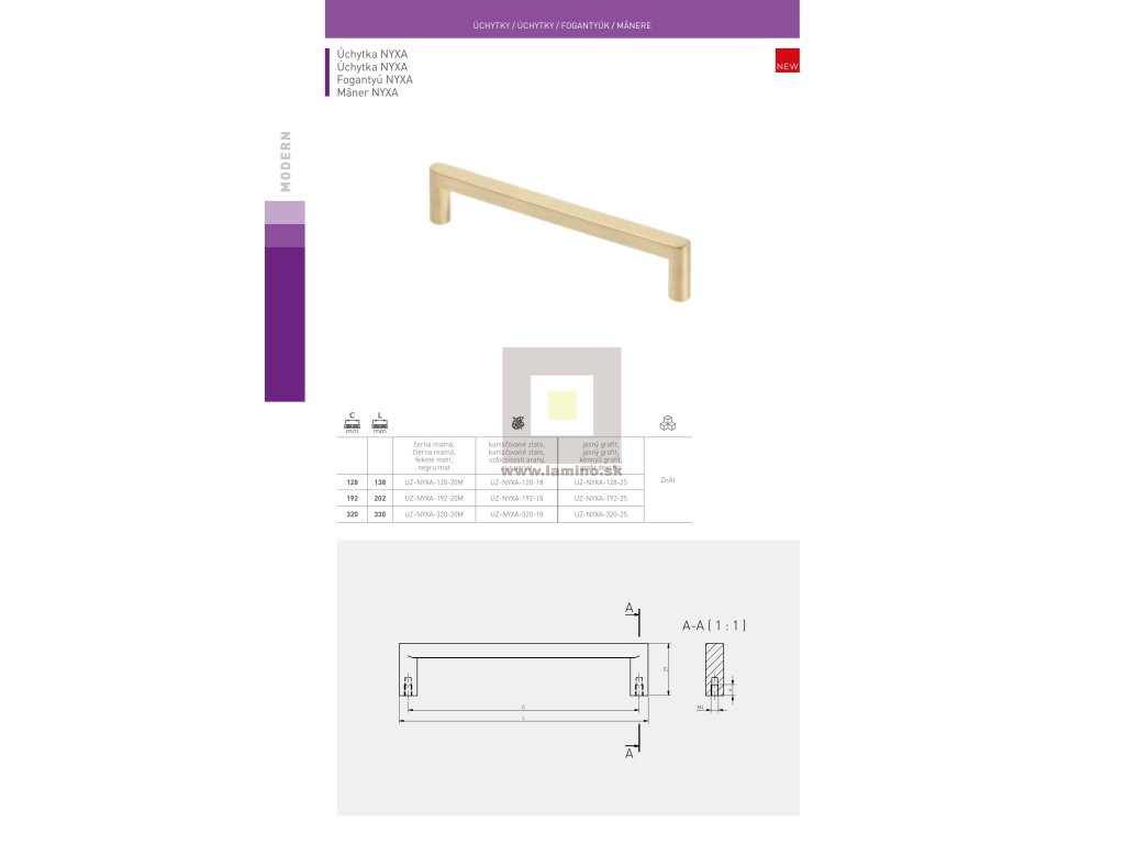 Úchytka NYXA C=192mm L=202mm brusená zlata