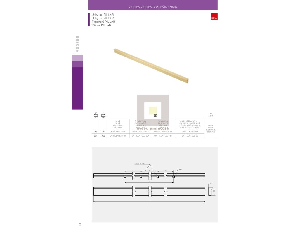 Úchytka PILLAR C=320mm L=360mm matná biela