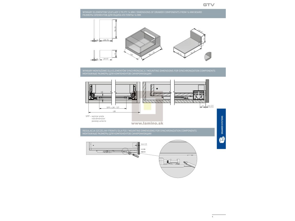 - kovania na zadnej stene umožňujú jednoduchú montáž na korpus výsuvu