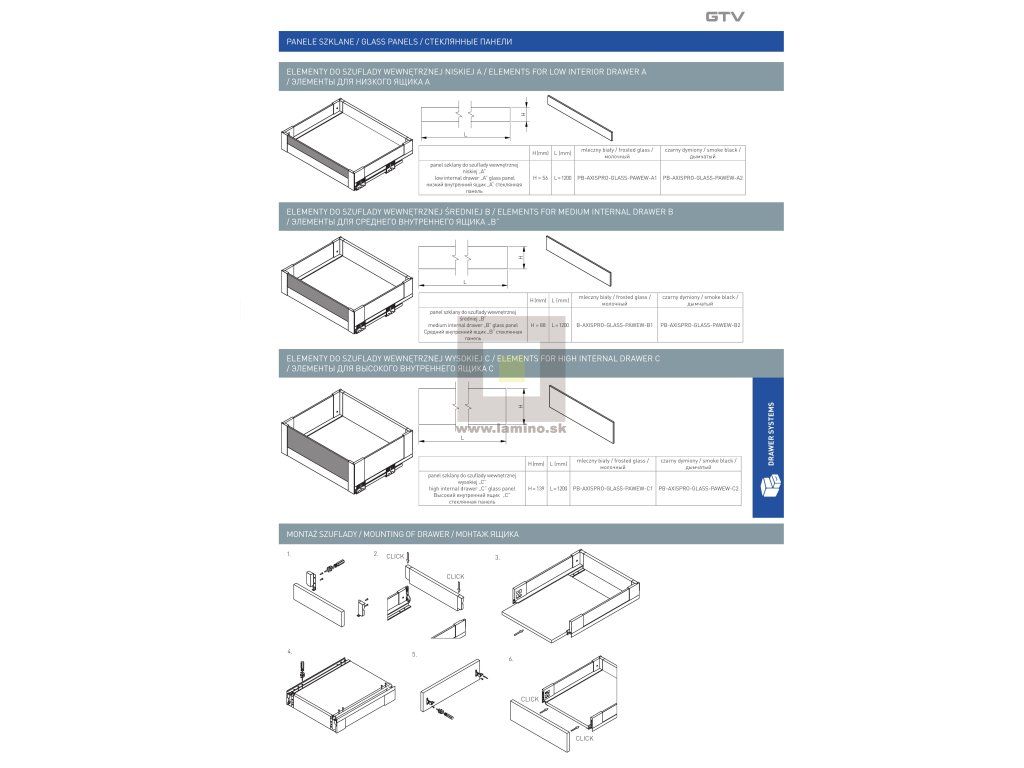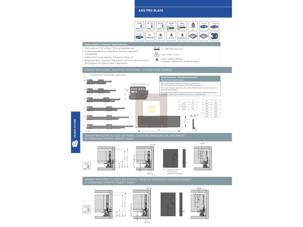 Výsuv AXISPRO sklené bočnice 400 C antracit