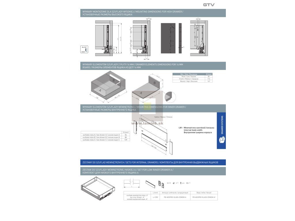 Výsuv AXISPRO sklené bočnice 500 A čierny