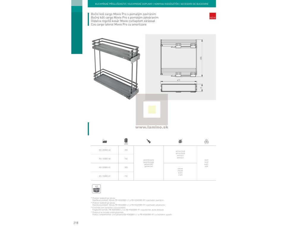 Výsuv do koša Cargo 150/200 s doťahom, pravý