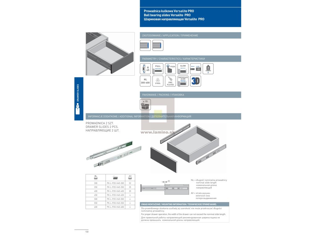 Výsuv guličkový VERSALITE TOUCH push to open 400mm