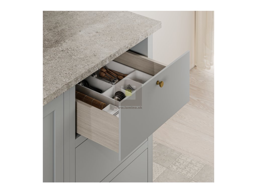 Výsuv s doťahom Modern Slide s mechanizmom tichého zatvárania (SOFT-CLOSE), dostupný v ôsmich hĺbkových variantoch. Vyrobené z ocele potiahnutej zinkom na ochranu proti korózii. Využíva technológiu posuvného uchytenia so spojkou. Spodná zostava sa navyše vyznačuje skrytým uchytením na dno výsuvu, čo umožňuje zachovať vysokú estetiku. Mechanizmus tichého zatvárania zvyšuje komfort, a preto bude systém skvele fungovať v každodenných miestnostiach. Plný výsuv umožňuje prístup do celej hĺbky zásuvky.