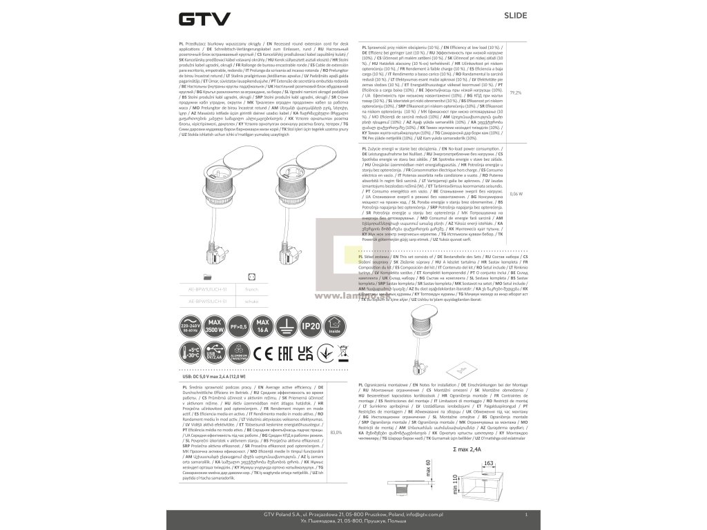 Zásuvka SLIDE 1x230V 1xUBS 60mm inox