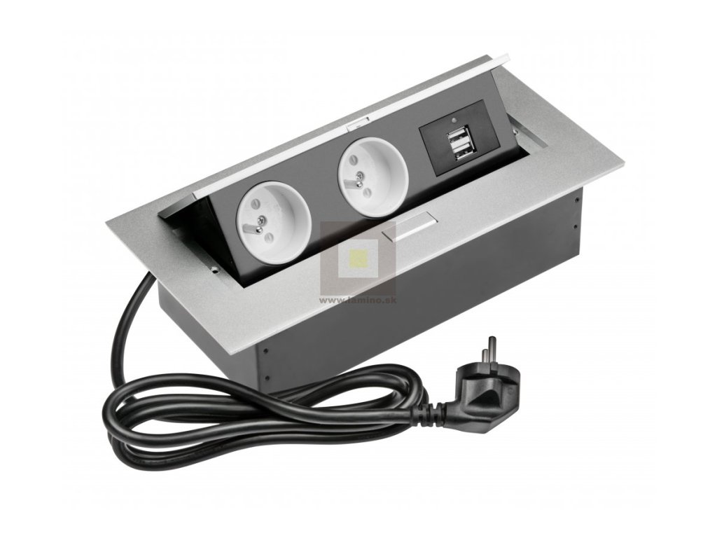 Zásuvka výklopná 2x230V 2xUSB hliník