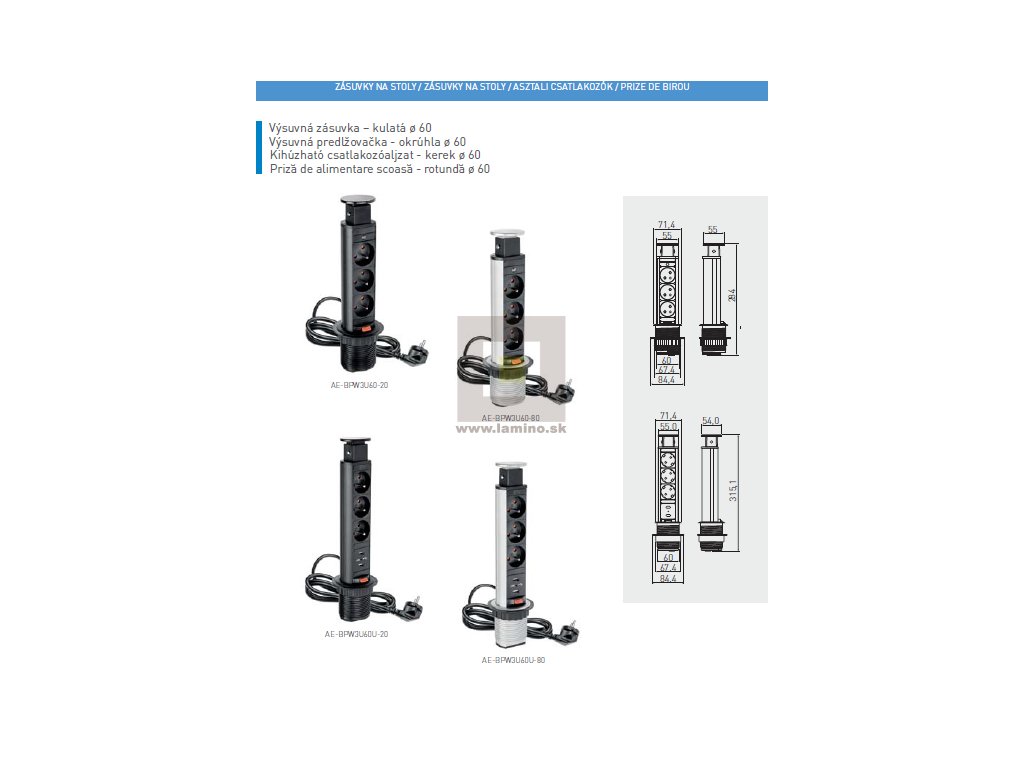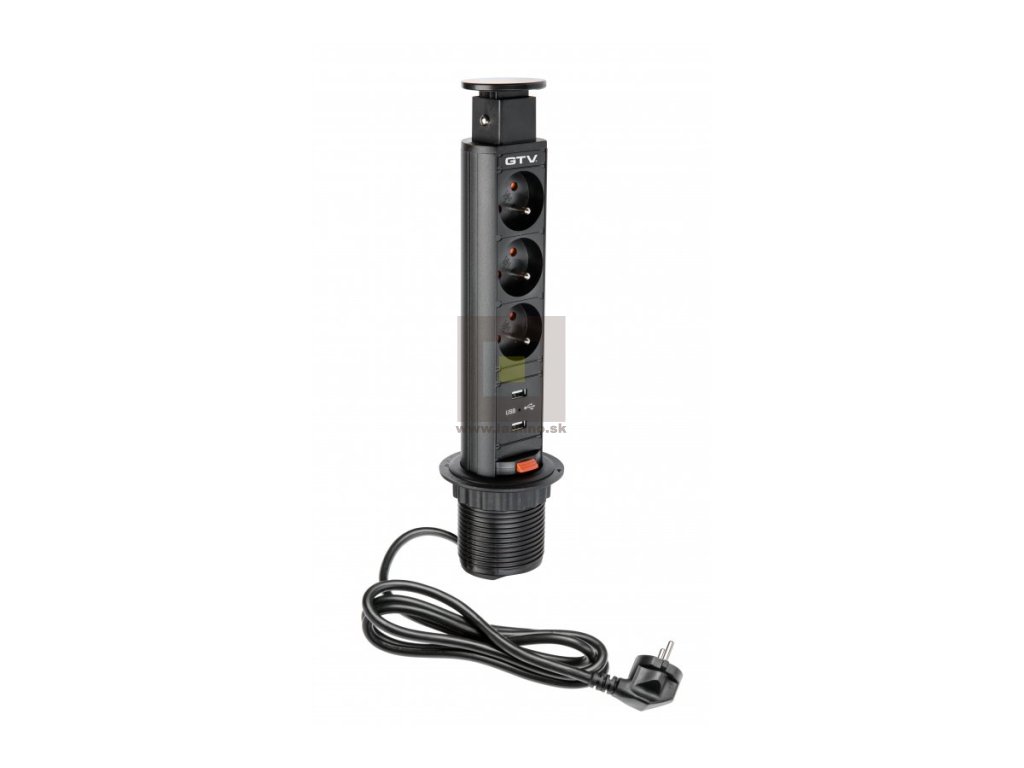 Zásuvka výsuvná 3x230V 2xUSB 60mm čierna